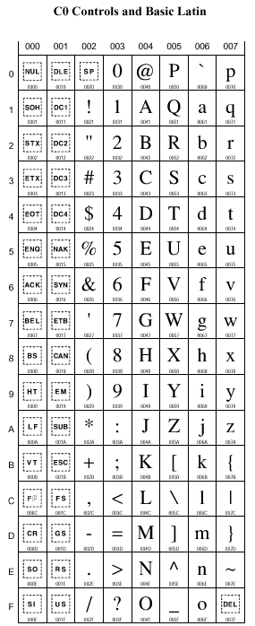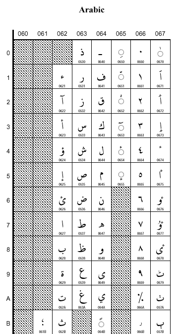 Die uni-code wordt in deze tabellen met hexadecimale getallen aangegeven.