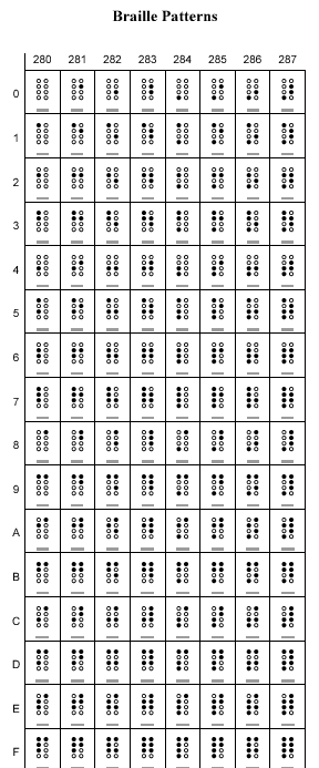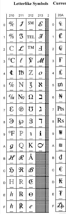 Hieronder zie je een aantal van die 64000 tekens met de bijbehorende uni-code.