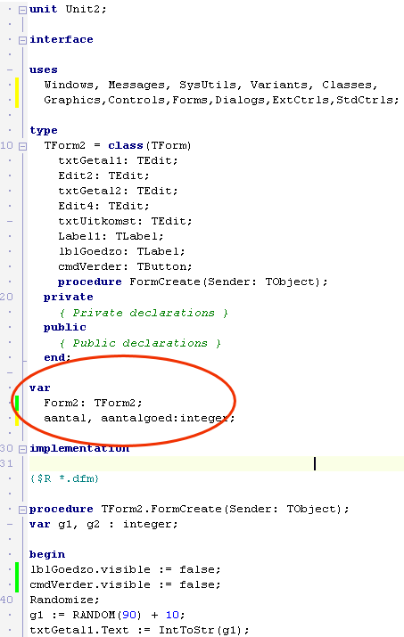 De variabelen aantal en aantalgoed zijn zogenaamde "globale" variabelen,