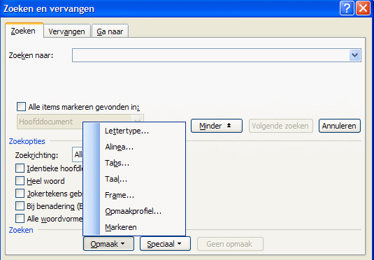 Je kunt ook tekst laten vervangen. Maar niet alleen tekst, ook opmaak, en speciale tekens.